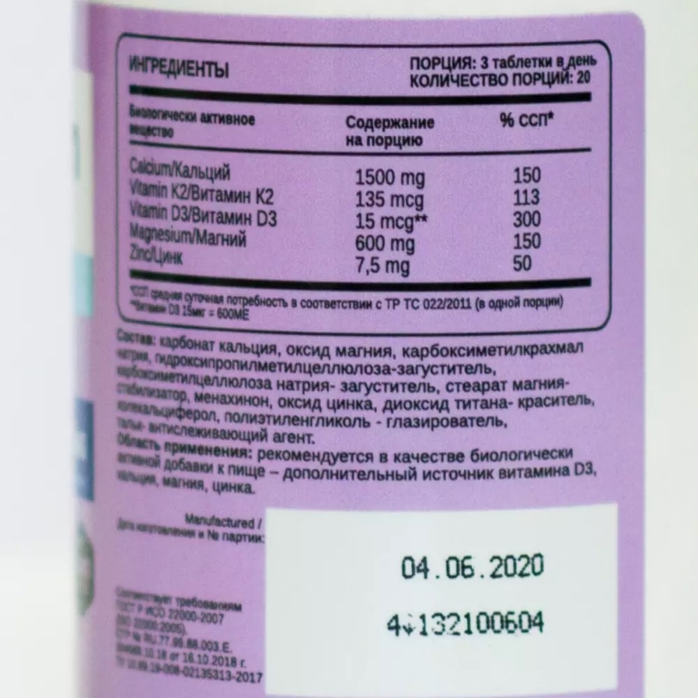 Витамины Chikalab Кальций К2 Д3 Магний Цинк 60 капсул