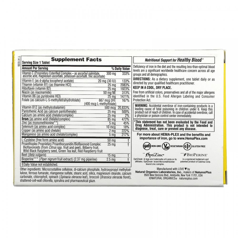 Витамины Natures Plus Hema-Plex Iron 10 таблеток