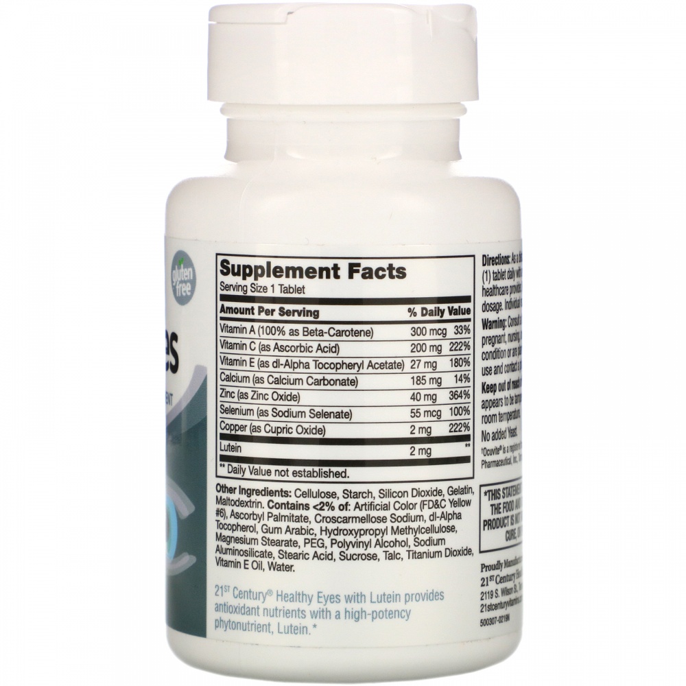 Препарат «Здоровье глаз» с лютеином от 21st Century сочетает полезные свойства антиоксидантов с высокоэффективным фитонутриентом лютеином.