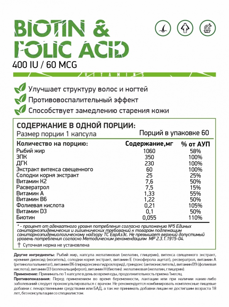 Интернет-магазин Body-Pit.Life предлагает купить Витамины NaturalSupp Biotin+Folic Acid+Omega 3 60 капсул в Барнауле.