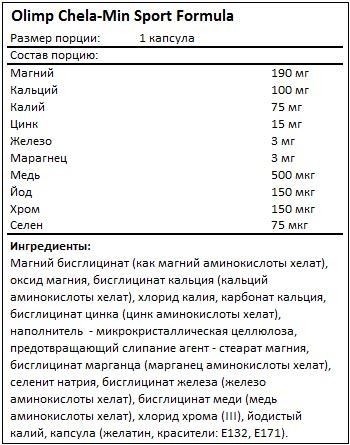 Ингредиенты: Ингридиенты CHELA-MIN Sport: