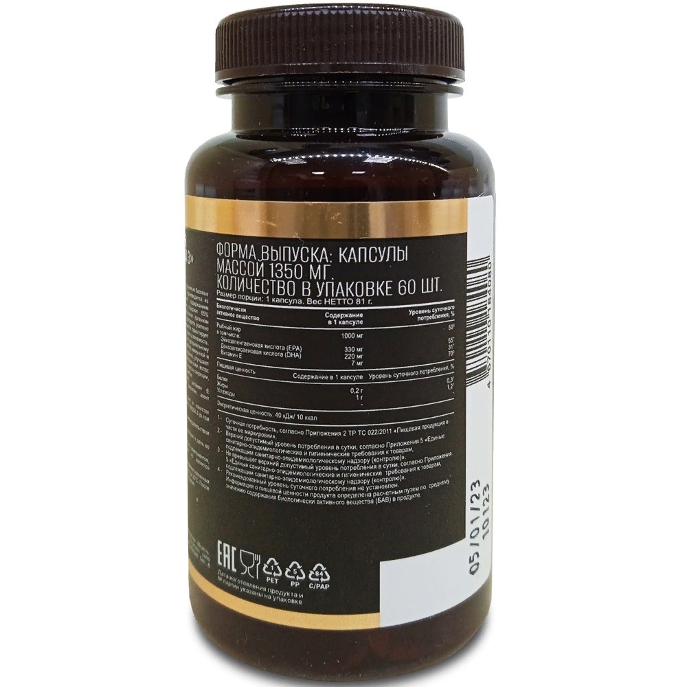 Одна капсула содержит 65% концентрацию, поэтому всего 2 капсулы в день обеспечат организм необходимым количеством ПНЖК Омега-3.
