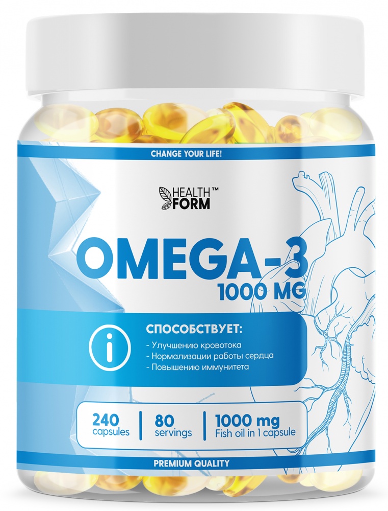 Omega-3 1000 mg от Health Form - это высококачественный рыбий жир в капсулах, с содержанием ПНЖК омега-3 не менее 30%.