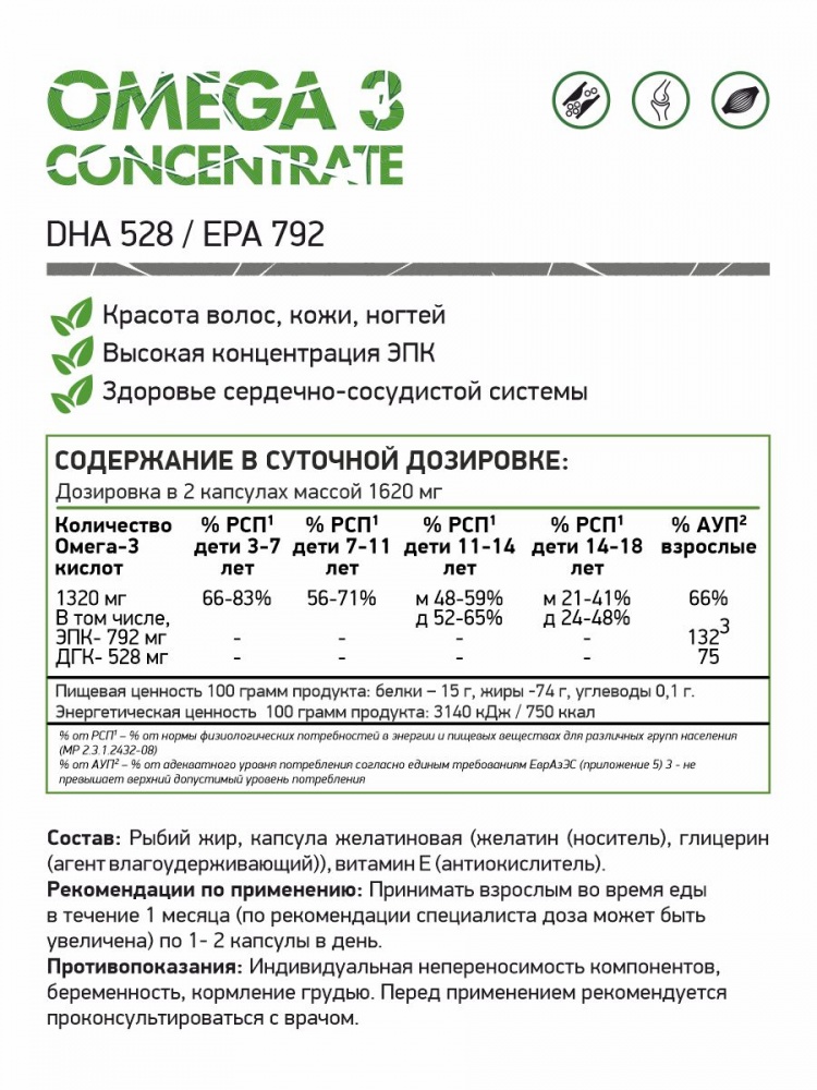 Биологически активная добавка "Омега-3 жирные кислоты" рекомендуется в качестве общеукрепляющего средства, дополнительного источника полиненасыщенных жирных кислот (ПНЖК) омега-3.