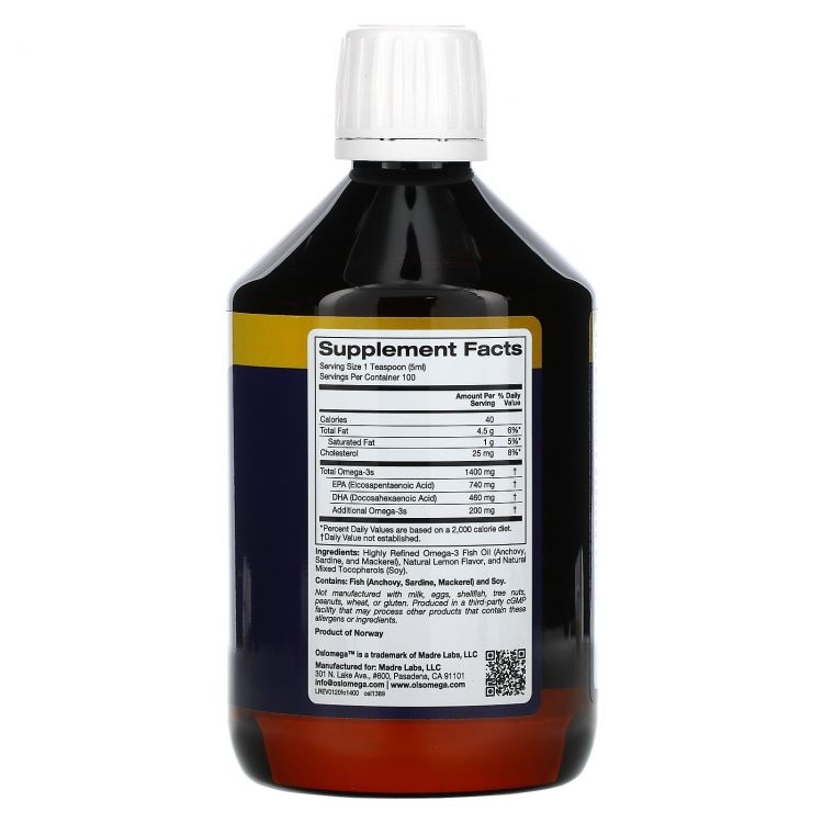 Антиоксидант Oslomega Omega-3 Fish oil 1400 мг 500 мл