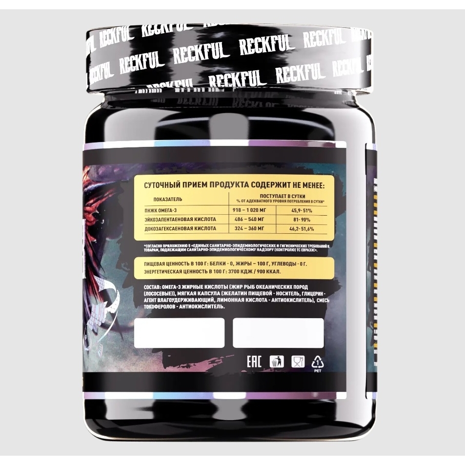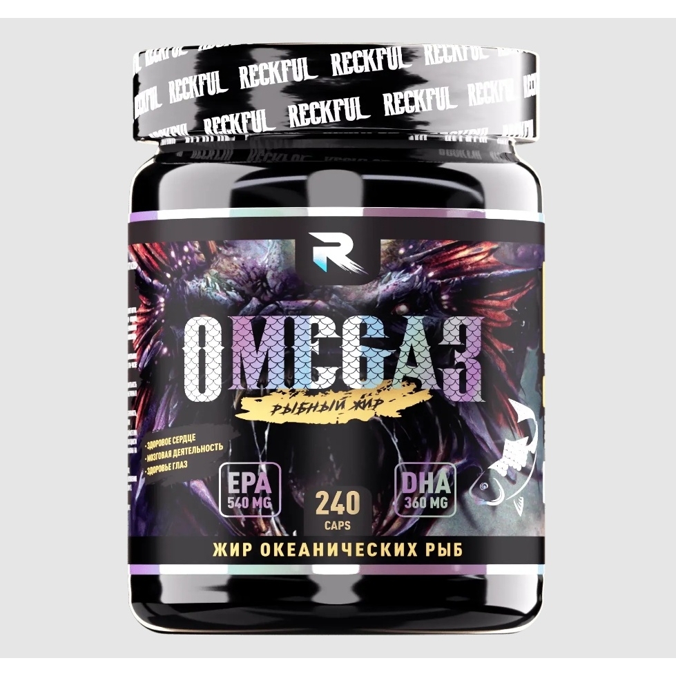 RECKFUL Omega-3 производится из высококачественного рыбьего жира, обеспечивая чистоту и максимальную концентрацию активных компонентов (35% EPA и DHA). Упаковка содержит 240 капсул, что обеспечит долгосрочное использование и полную поддержку вашего организма.