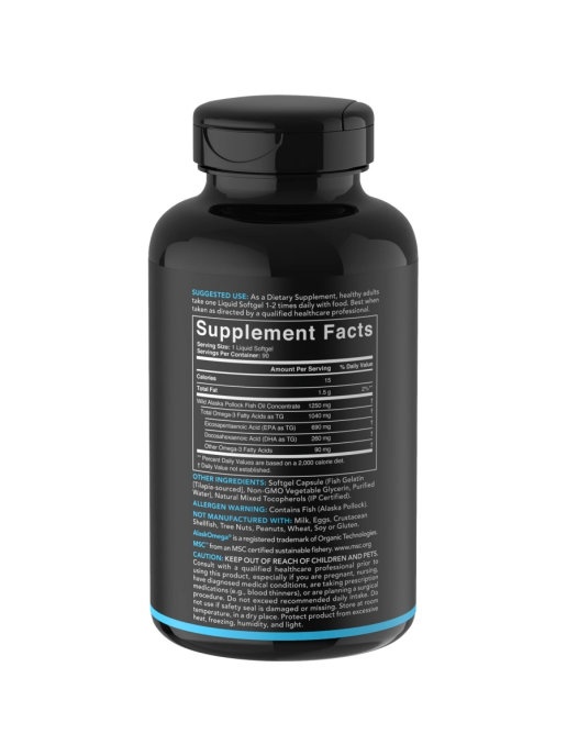 Рыбий жир с омега-3 от Sports Research содержит ультраконцентрированные уровни ЭПК и ДГК (937 мг) в каждой мягкой таблетке с рыбьим жиром. Добывается из дикого аляскинского минтая, обитающего в холодной воде (не выращивается на ферме).