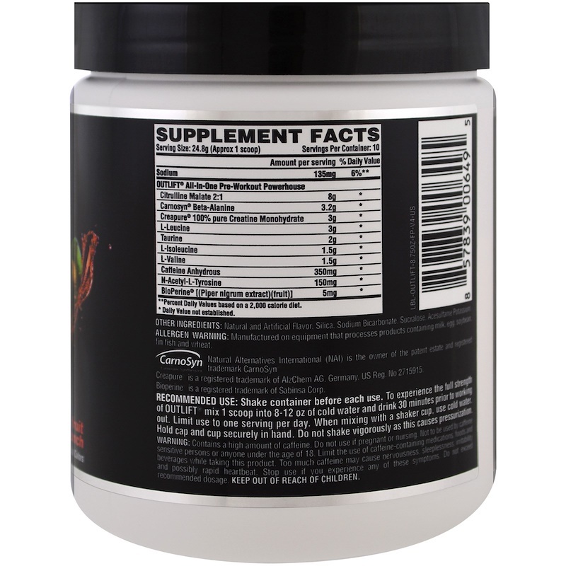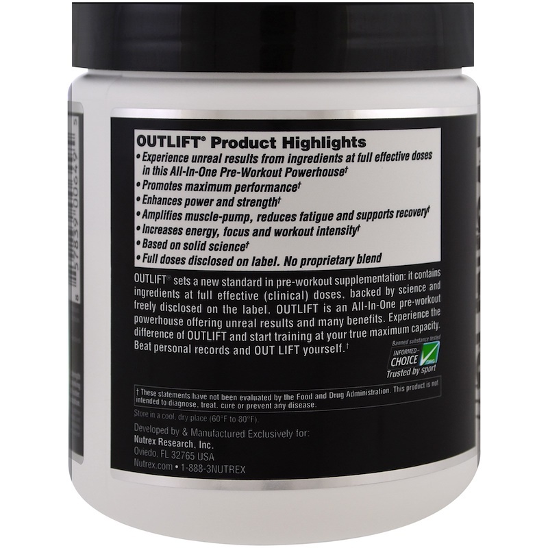 Новаторская формула Nutrex Outlift обеспечивает внушительный памп, постоянную энергии, быстрое восстановление и предельную фокусировку, позволяя проводить каждую тренировку наиболее результативно. Приём Nutrex Outlift позволит вам быть на пике производительности даже в конце тренировки. Передовая разработка Outlift от Nutrex выведет тренировки на новый уровень, обеспечив впечатляющие результаты!