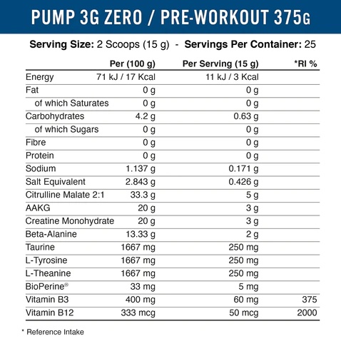 Предтренировочный комплекс Applied Nutrition Pump-3G Zero 375 гр