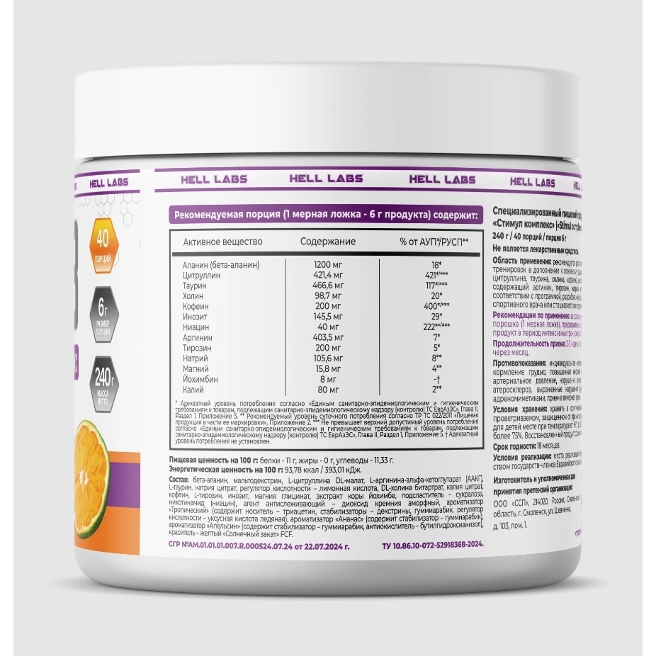 - Предтренировочные комплексы Hell Labs