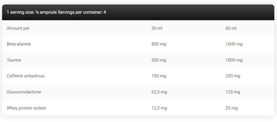 Способ применения: Выпивайте по 1/4 бутылке-шота утром и до начала предполагаемых нагрузок. Не рекомендуется использовать более 2-х порций в сутки.