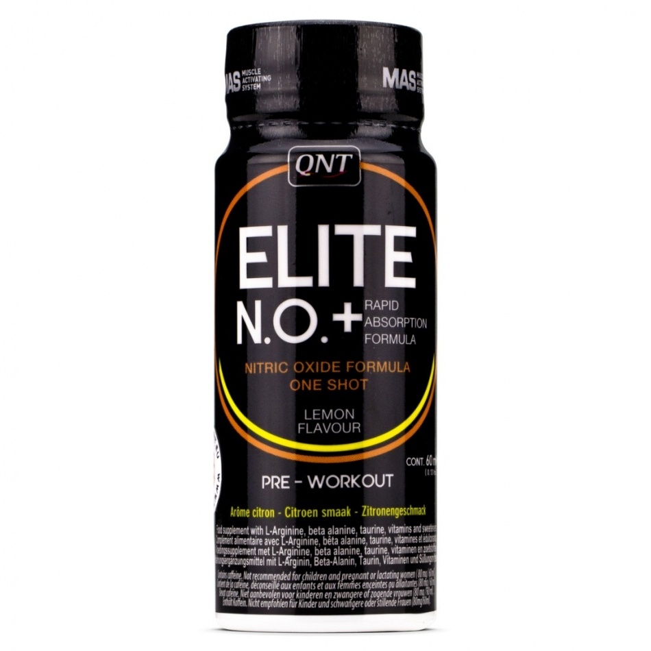 NO+Элит Shot - результат современных технологий от QNT. Эта передовая формула содержит ингредиенты, которые стимулируют выработку оксида азота и обеспечивают Вас силой и энергией. NO+Элит содержит аргинин, аминокислота, повышающие выработку оксида азота, который усиливает кровоснабжение мышц. А такие компоненты как бета аланин, таурин, женьшень и кофеин обеспечивают Вас энергией и повышают выносливость для наиболее качественного тренинга. Сбалансированный состав и наиболее эффективные компоненты делают NO+Элит одним из лидеров среди предтренировочных комплексов.