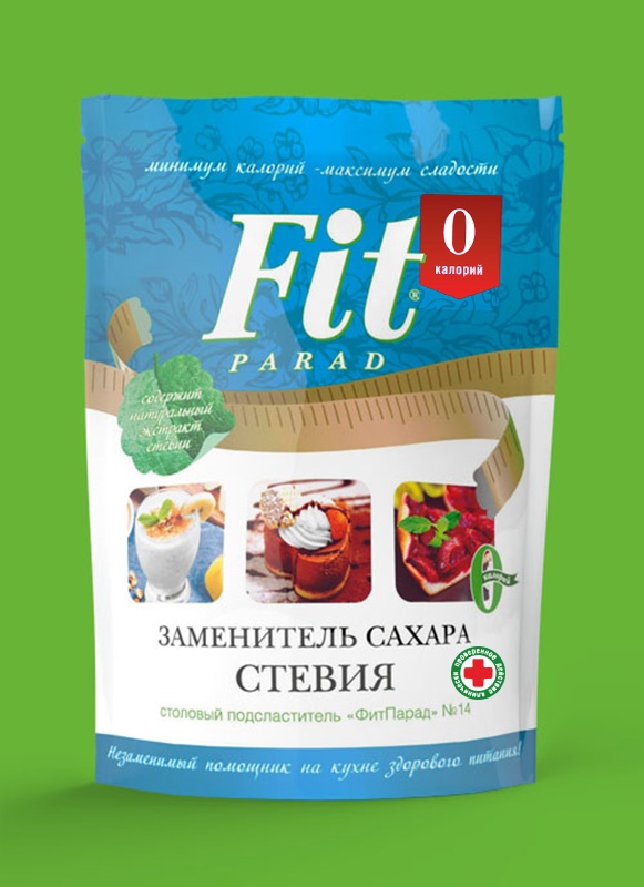 В основе заменителя сахара Фит Парад №14 - природный полиол эритритол, который содержат сливы, дыни, груши, виноград, фасоль, грибы, соевый соус, фруктовые ликеры и пр. Однако в отличие от других полиолов и природных углеводов (сорбит, ксилит, изомальт, фруктоза), он обладает очень низкой энергетической ценностью (0-0,2 кКал/г). В промышленных целях эритритол получают, чаще всего, из кукурузы. Международными стандартами ему присвоен наивысший статус безопасности: дневная норма потребления эритритола «не имеет ограничений».