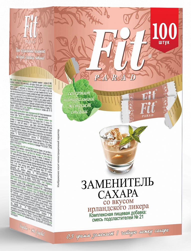 Состав: подсластитель эритрит (Е968), подсластитель сукралоза (Е955), экстракт стевии, ароматизатор "Ирландский ликер".