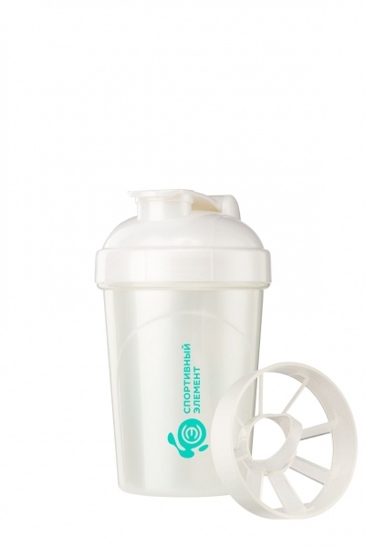 В комплект входит: бутылка, крышка с носиком для питья, пластиковая сетка для размешивания, одноцветный логотип.