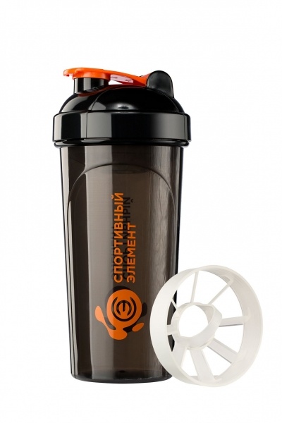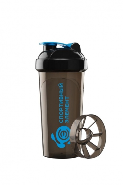 Стильная форма бутылки. В комплект входит: бутылка, крышка с носиком для питья, пластиковая сетка для размешивания, одноцветный логотип.