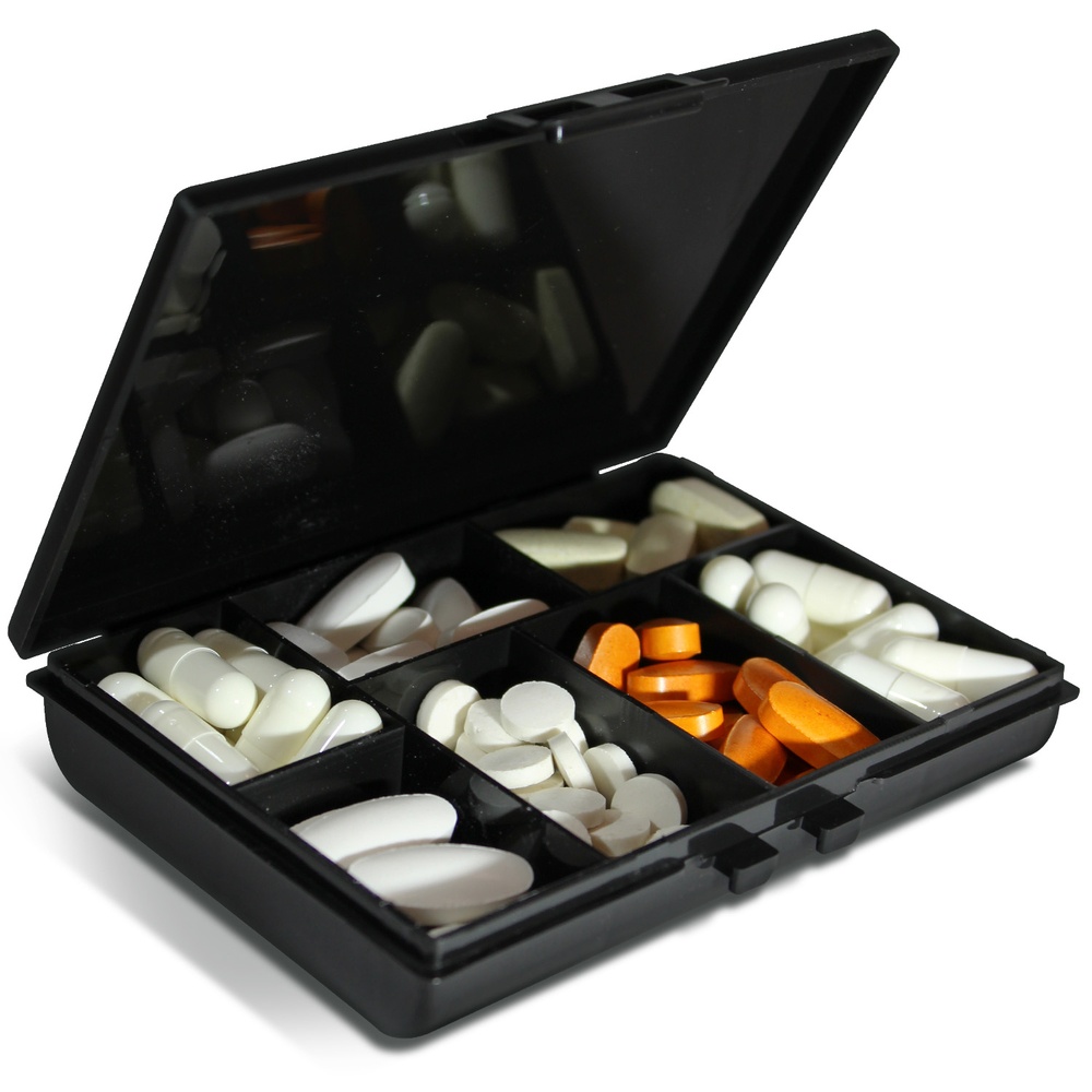 Таблетница компании Be First является очень удобным аксессуаром для всех, кто принимает различные препараты — витамины, лекарства, капсулированные добавки и т.п. В таблетнице их удобно взять с собой на тренировку или в поездку, зная, что ничего не рассыплется, не потеряется и не перепутается. Все таблетницы делаются из экологичного пищевого пластика BPA & DEHP FREE. Данная таблетница имеет внутри 7 отделений — можно взять 7 препаратов, или разделить один на 7 приемов, к примеру, по дням недели. Имеются черные, белые и прозрачные таблетницы. Крышка закрывается плотно и язычок удерживается двумя выступами, что исключает случайное открывание.