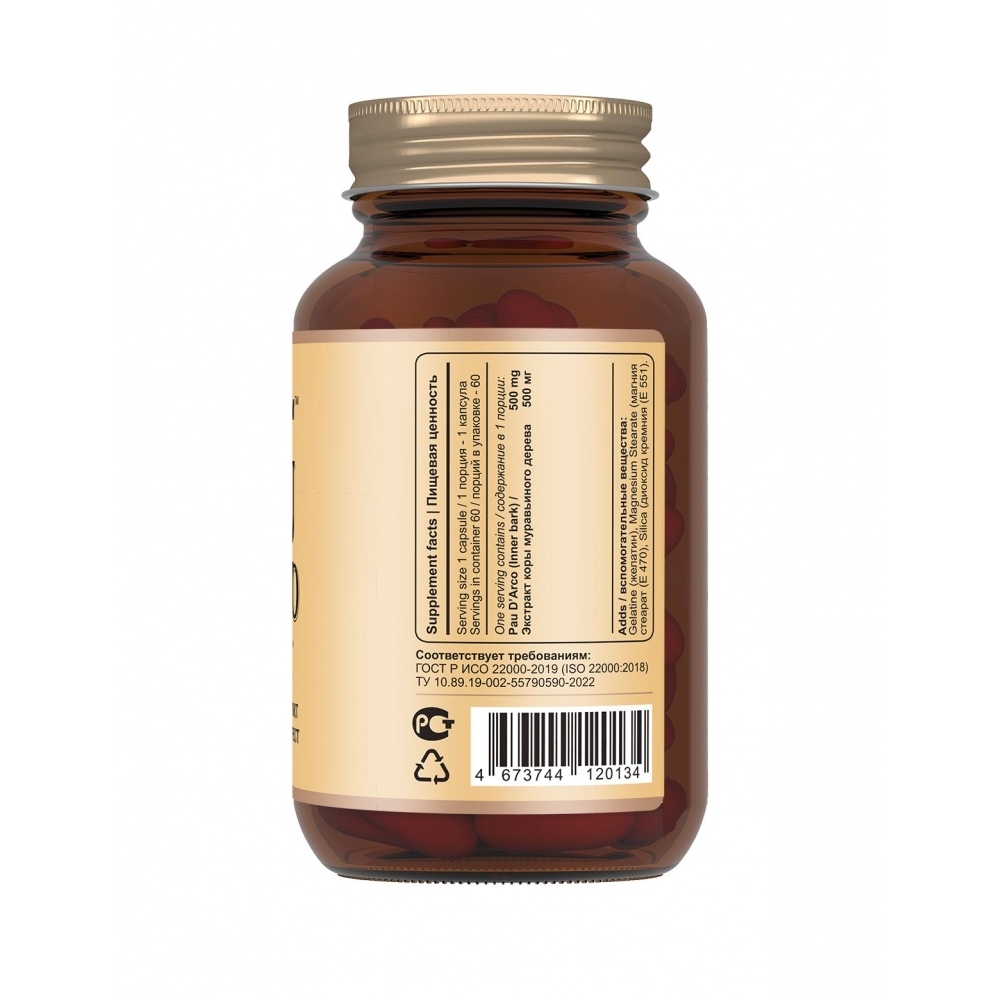Pau D'Arco Extract изготавливается на основе коры муравьиного дерева, которое растёт в тропиках Амазонки. Пищевая добавка содержит только натуральные растительные компоненты и оказывает положительное воздействие на здоровье человека.