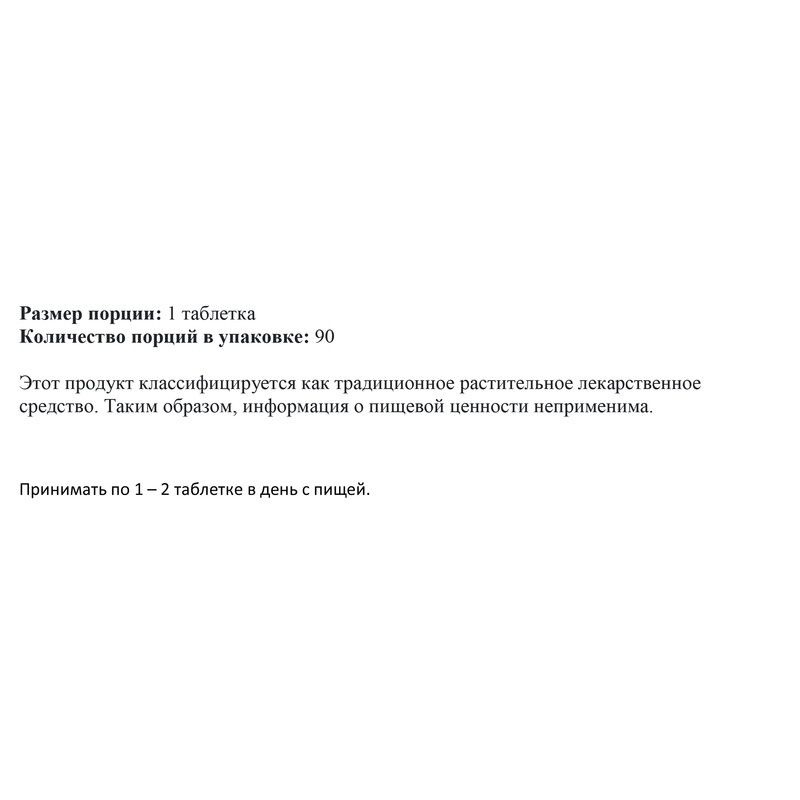 Рекомендации к применению: Принимать по 1-2 таблетки в день во время еды.