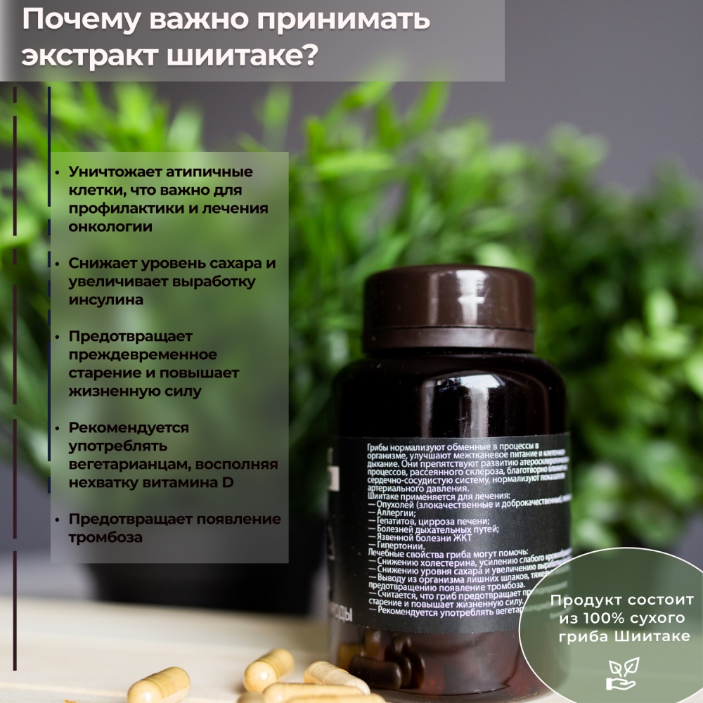 Состав: Продукт состоит из 100% сухой Шиитаке.