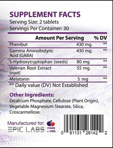 Фенибут – является производный Гамма-аминомасляной кислоты и фенилэтиламина. Снимает нервное напряжение, стресс и тревогу, позволяет быстрее заснуть и продлевает глубокую фазу сна. Фенибут также способен усиливать действие снотворных.