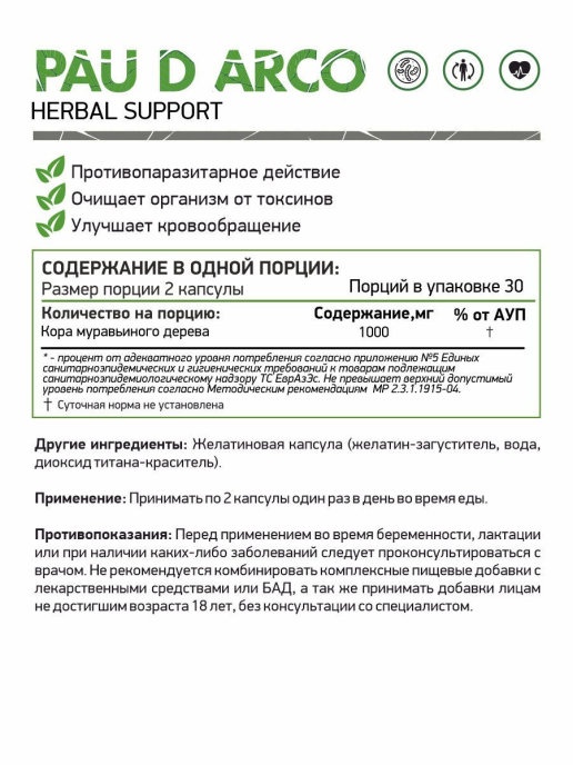 Специальный препарат NaturalSupp PAU DARCO 60 капсул