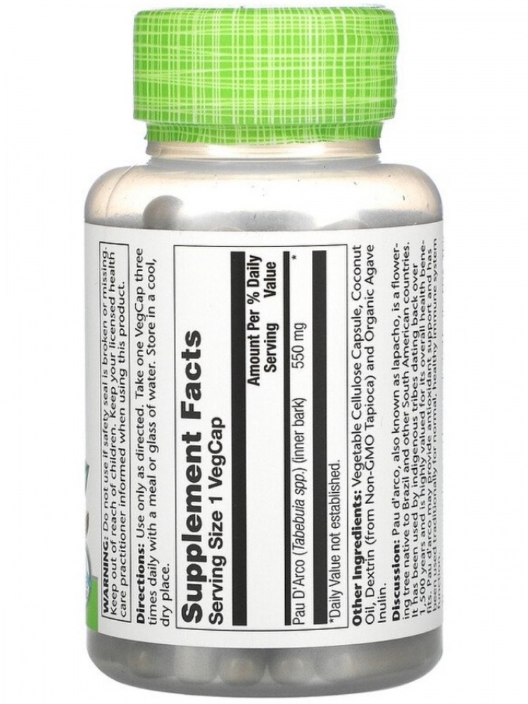 Специальный препарат Solaray Pau D'Arco 550 мг 100 таблеток