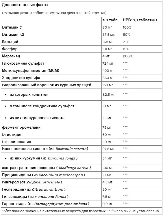 Кроме того, кальций, марганец и витамин К в продукте также помогают поддерживать нормальное состояние костей. В дополнение к перечисленным выше витаминам и минералам, таблетка Arthro Forte также содержит формулу ChondrActiv с коллагеном II типа. Помимо содержания минералов, Arthro Forte содержит оптимальную дозу глюкозамина, хондроитина, МСМ и коллагена. Часто также используемые при артритной боли, это соединения, частично содержащиеся в организме человека и частично поступающие с пищей. Мы также добавили в продукт растительные эссенции. Экстракты азиатского женьшеня, индийского ладана, клюквы и люцерны, а также фермент бромелайн, извлеченный из ананаса, также являются важными элементами комплексного состава. Ко всему этому мы также добавили экстракт куркумы и имбиря, хотя и не из-за их вкуса. Эти травы традиционно используются в качестве противовоспалительных средств в Азии.