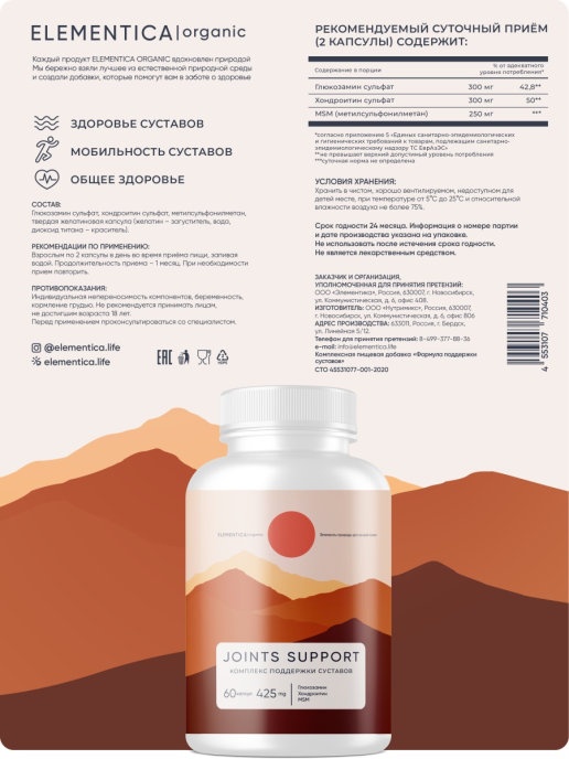 Интернет-магазин Body-Pit.Life предлагает купить Хондропротектор Elementika Joints Support 425 мг 60 капсул в Барнауле.
