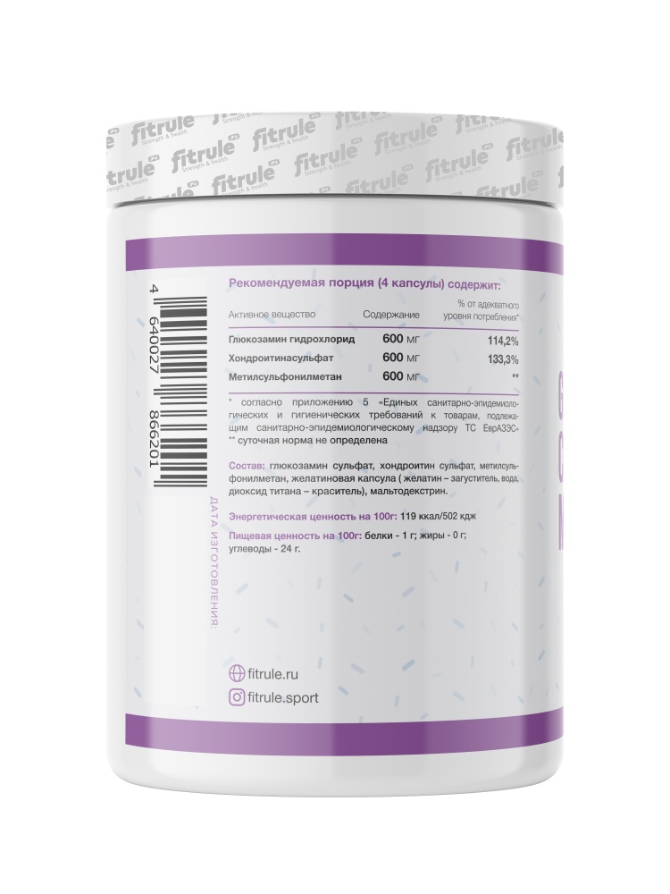 Интернет-магазин Body-Pit.Life предлагает купить Хондропротектор FitRule Glucosamine+Chondroitin+MSM 600 мг 120 капсул в Барнауле.