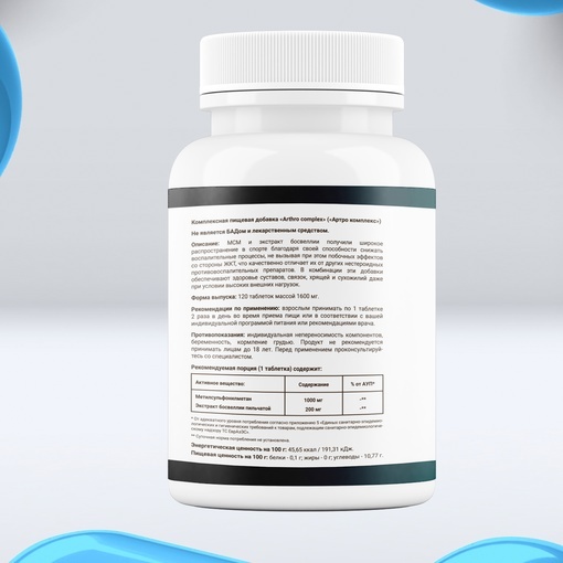 В комплекс входит MSM - это естественный антиоксидант, который уменьшает воспаление и болезненные ощущения.