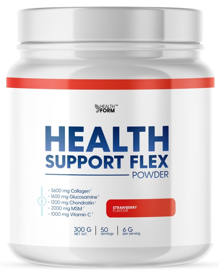 HEALTH SUPPORT FLEX от HEALTH FORM - это источник коллагена и хондропротекторов глюкозамина, хондроитина и метилсульфонилметана (МСМ) с витамином C в порошке для приготовления напитка.
