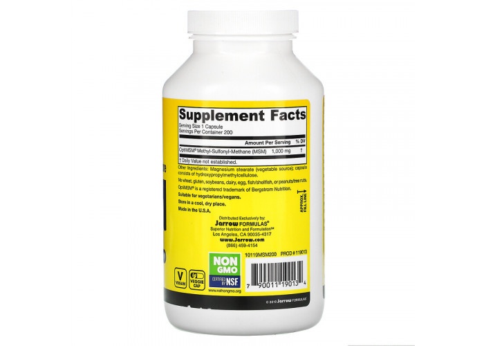 Хондропротектор Jarrow Formulas MSM 1000 мг 200 капсул