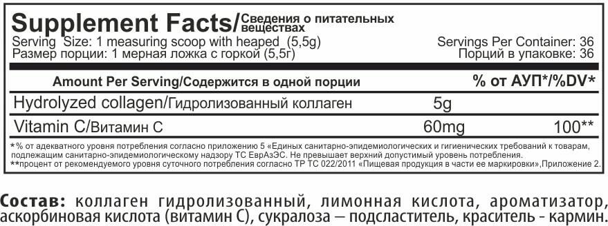 Применение: Растворить 1 порцию (5,5г) продукта в 150 - 200 мл воды.