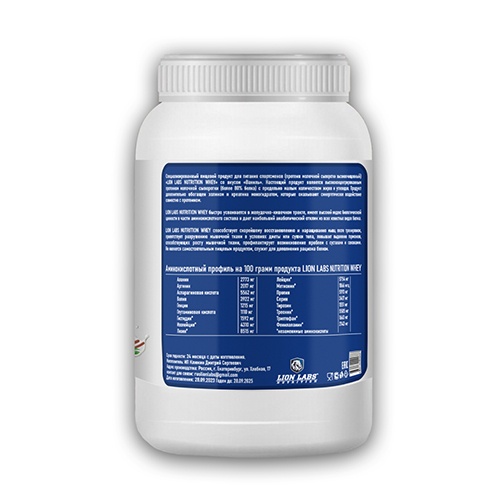 Lion Labs Nutrition Whey быстро усваивается в желудочно-кишечном тракте, имеет высокий индекс биологической ценности в части аминокислотного состава и дает наибольший анаболический отклик из всех известный видов белков.