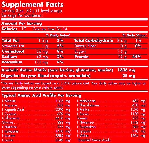 Белок из сыворотки, считают лучшим среди всех видов белка в бодибилдинге, поскольку его биологическая ценность выше всех. Сывороточный белок, имеет огромный аминокислотный состав и очень высокую концентрацию BCAA (изолейцин, лейцин, валин), по сравнению с остальными источниками белка. Аминокислотный профиль этого протеина является превосходным. В его состав, так же добавлены, так называемые «аминокислот-анаболиков» (BCAA, аргинин, глютамин).