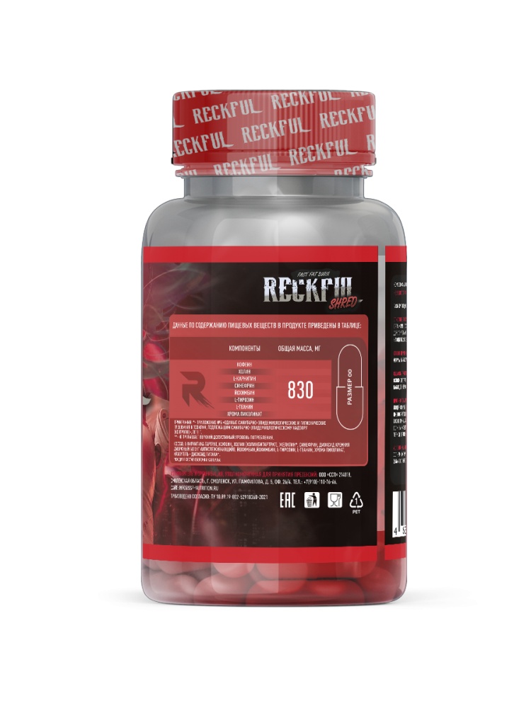 Reckful Shred - добавка к пище способствует расщеплению жировых молекул в организме, ускорению обмена веществ, повышению концентрации, подавлению аппетита, действительно уникальный состав этого жиросжигателя поможет вам контролировать аппетит, находиться всегда в приподнятом настроении, максимально выкладываться на тренировках.