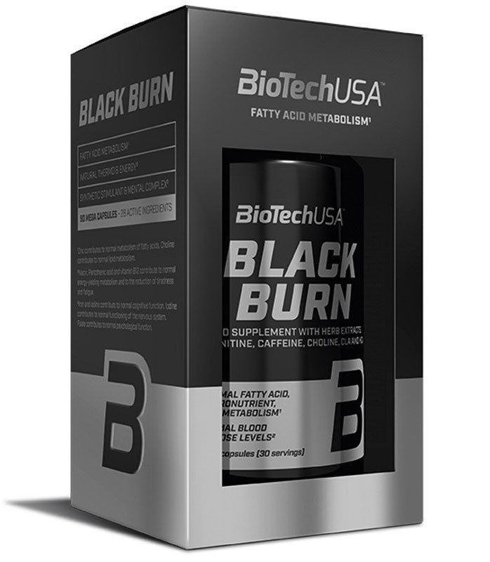 В витаминно-минеральном комплексе, служащем основой продукта Black Burn, имеются также такие популярные ингредиенты, как L - карнитин, L-тирозин, CLA, HCA или инозитол. Среди разнообразных ингредиентов данного продукта имеется 11 растительных экстрактов, таких как кайенский перец, черный перец, корень колеуса форсколии, лист зеленого чая, зеленый кофе и гуарана. Последние 3 растительных экстракта также служат естественными источниками кофеина, но помимо этого мы также обогатили его добавлением безводного кофеина для повышения динамики ваших тренировок.