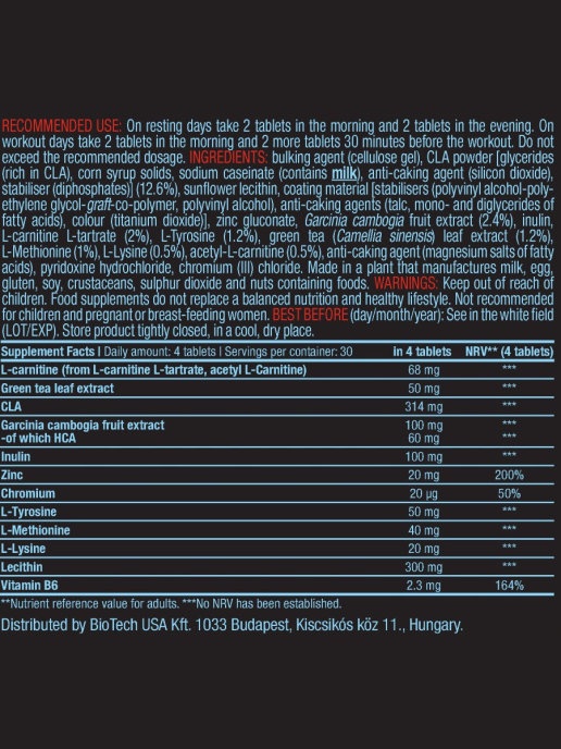 Super Fat Burner от BioTechUSA - это мощный и эффективный жиросжигатель-липотропик. Он включает в себя 14 активных компонентов, в том числе 3 вида L-карнитина, конъюгированную линолевую кислоту (CLA) и экстракт зеленого чая. Цинк, хром и биотин в его составе способствуют нормализации обмена веществ и уровня сахара в крови.