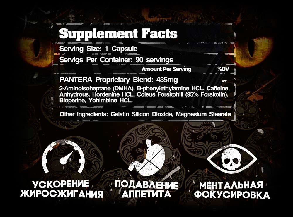 Beta-Phenethylamine Hcl (Фенилэтаноламин). Из-за него происходит выброс катиохламинов, которые оказывают жиросжигающее действие. Это происходит потому, что они стимулируют гипоталамус, который ускоряет обменные процессы. Улучшает настроение, сосредоточенность и помогает контролировать аппетит.