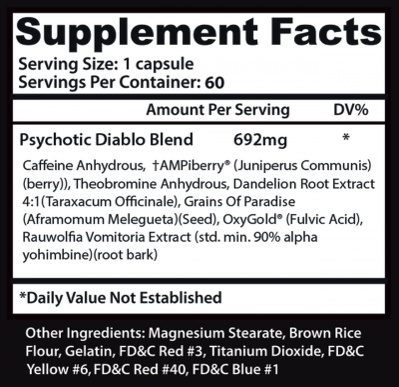 Psychotic Diablo – полностью натуральный жиросжигатель, который стимулирует умственную и физическую производительность без угнетения и негативного воздействия на ЦНС.