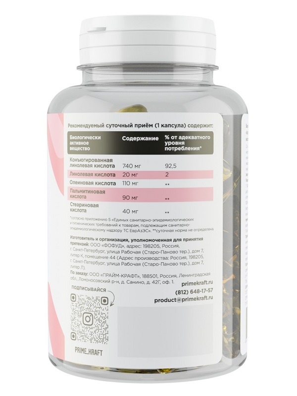 Жиросжигатель Prime Kraft CLA 90 капсул
