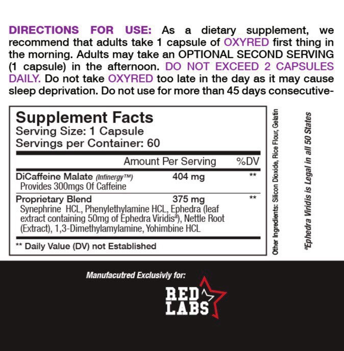 Жиросжигатель Red Labs OXYRED (1.3 DMAA+EPHEDRA) 60 капсул