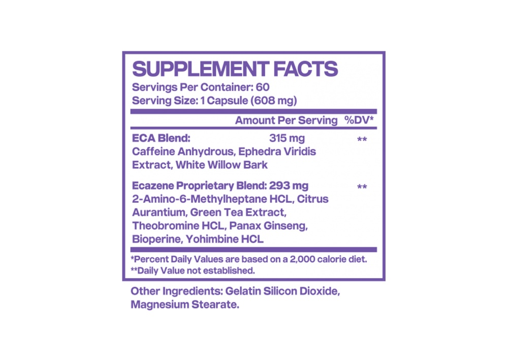 Основа препарата — стек ECA. Это горючая смесь кофеина, эфедры и коры белой ивы, которую могут использовать только подготовленные атлеты. Если вы — новичок, не принимавший ранее ничего крепче аскорбинки, ECAZENE однозначно не для вас. Добавка очень сильная!