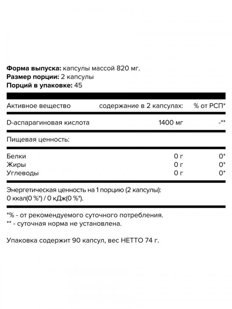 Тестобустер aTech Nutrition Д-аспарагиновая кислота DAA 90 капсул