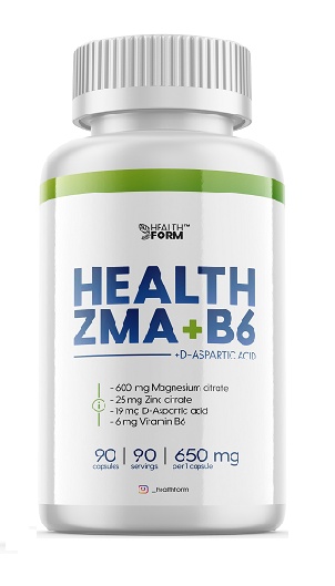 HEALTH ZMA+B6 от HEALTH FORM - это источник минералов цинка и магния с аспарагиновой кислотой и витамином B6 в капсулах.