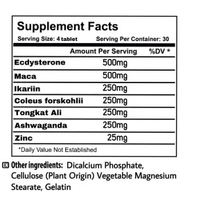 - Tongkat Ali (Тонгкат Али) – малайзийский женьшень, используется в современной медицине, а также входит в состав большинства тестобустеров. Способен повысить уровни общего и свободного тестостерона, либидо. Снижает уровни кортизола.