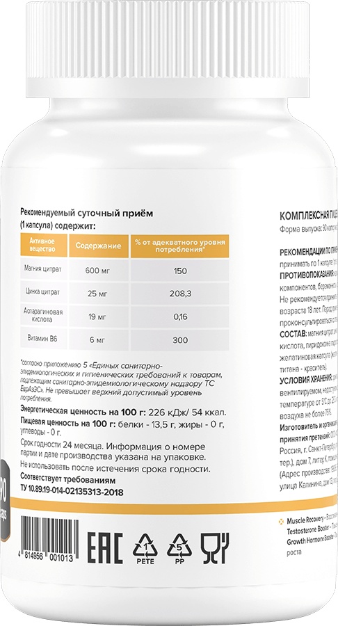 Витамин B6 в составе ЗМА Оптимум Систем является важнейшим звеном добавки. Вещество обеспечивает улучшенную транспортировку основных компонентов, повышает общую биодоступность комплекса и синергию микроэлементов.