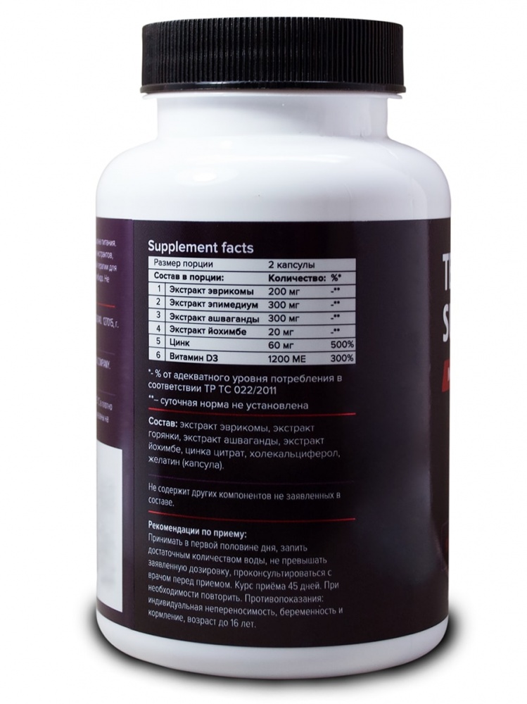 | Алкалоиды йохимбе (Экстракт йохимбе, 50 мг, 8%): | 4 мг |