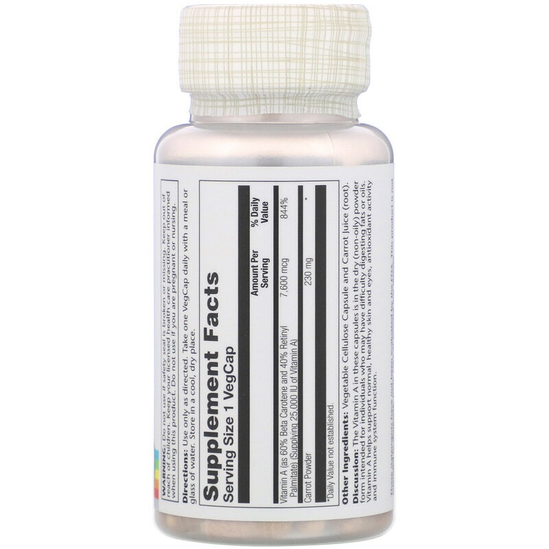Витамины Solaray Vitamin A 7600 мг 60 капсул